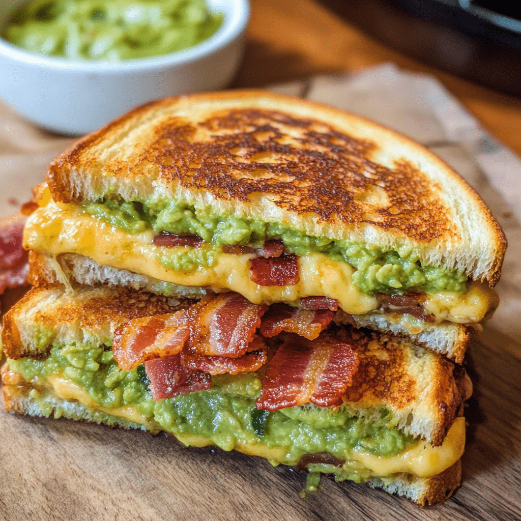 I create this dish, and the bacon crisps up to a delicious crunch, while the guacamole adds a creamy, fresh burst of flavor. The cheese melts beautifully, oozing out as I press the sandwich together. The bread toasts golden brown, creating the perfect crunch with each bite. The combination of textures and flavors makes this sandwich a crowd-pleaser that will leave everyone wanting more.