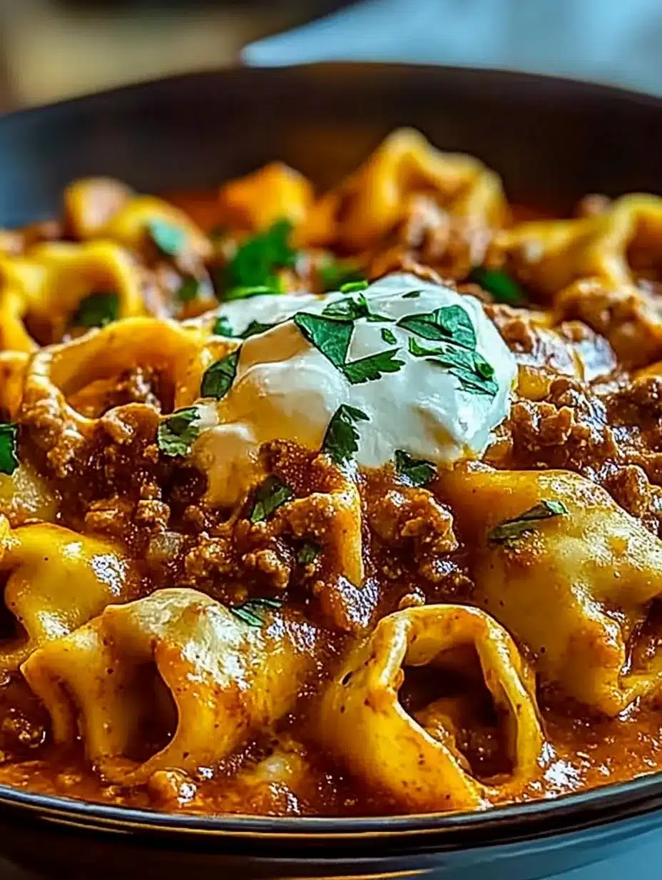 Cheesy Beef Enchilada Tortellini is a fusion masterpiece that perfectly blends the best of Mexican and Italian cuisines. This dish is not only simple to prepare but also rich in flavor. With its cheesy goodness and hearty filling, it’s an excellent choice for family dinners or gatherings with friends. Each bite promises satisfaction and warmth, while the potential for variations allows everyone to enjoy it their way. Whether you’re seeking comfort on a chilly evening or a dish to impress guests, Cheesy Beef Enchilada Tortellini is sure to be a hit!