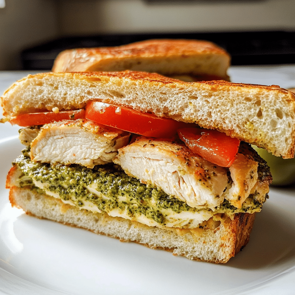 What I absolutely love about this sandwich is the burst of flavor in every bite. The pesto, with its bright green basil, garlic, and olive oil notes, adds a deliciously herbaceous kick that complements the juicy chicken perfectly. I remember preparing this sandwich for the first time and marveling at how easily it transformed a basic meal into something special—satisfying but never too heavy.