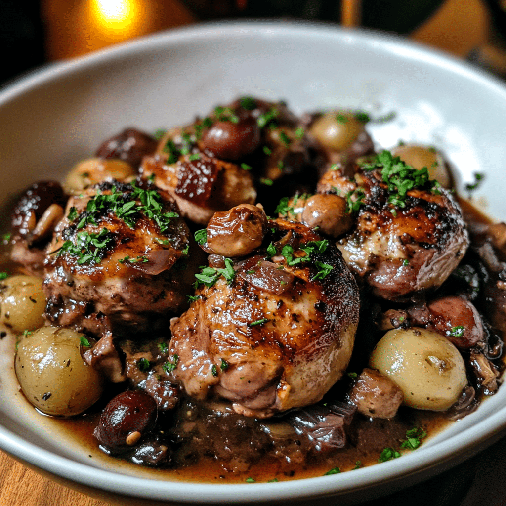 Coq au Vin is perfect for a special family dinner, a romantic evening, or when I have guests over. It’s an ideal dish for slow cooking, allowing the flavors to meld together. This recipe is great for anyone who loves savory, full-bodied meals that feel indulgent without being overly complicated.