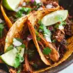 - Serve With Consomé: Serve the tacos with a side of the rich broth (consomé) for dipping. Garnish with chopped cilantro and diced onions. Squeeze fresh lime juice over the tacos before enjoying!