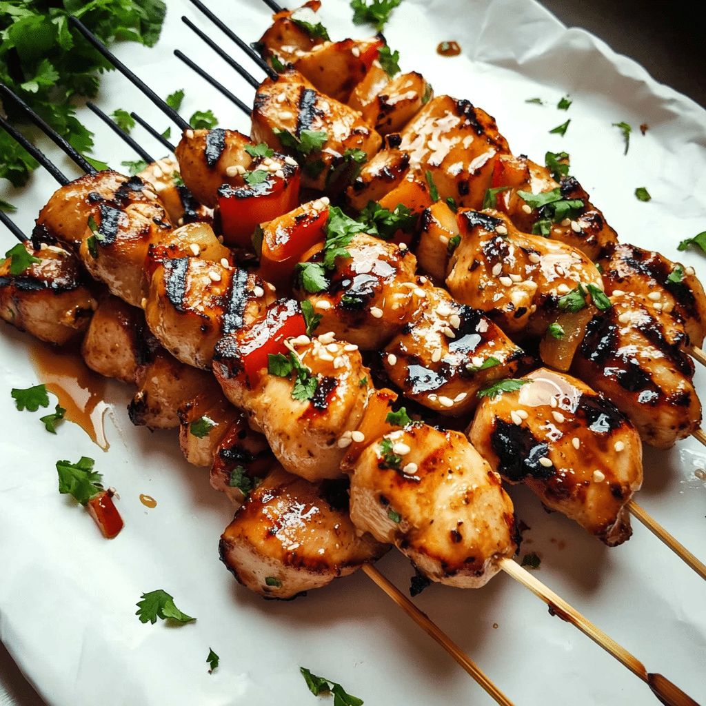The magic of this recipe lies in its balance of flavors and its simplicity. As the skewers sizzle on the grill, the aroma of soy sauce, ginger, garlic, and honey caramelizing on the chicken fills the air, creating an irresistible invitation to gather around the table. I vividly remember serving these at a casual backyard get-together; the combination of savory glaze and tender grilled chicken was such a hit, I hardly had leftovers!