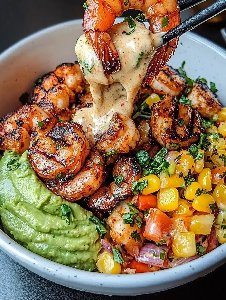 The Grilled Shrimp Bowl with Avocado, Corn Salsa & Creamy Garlic Sauce is a delightful recipe that combines nutrition and taste—making it ideal for both quick weeknight dinners and casual gatherings. The vibrant ingredients not only provide a feast for the eyes but also a burst of flavors that will keep you coming back for more. With the ease of preparation and endless variations, this dish will undoubtedly become a favorite in your culinary repertoire. Don’t hesitate to create this incredible meal and savor its deliciousness!