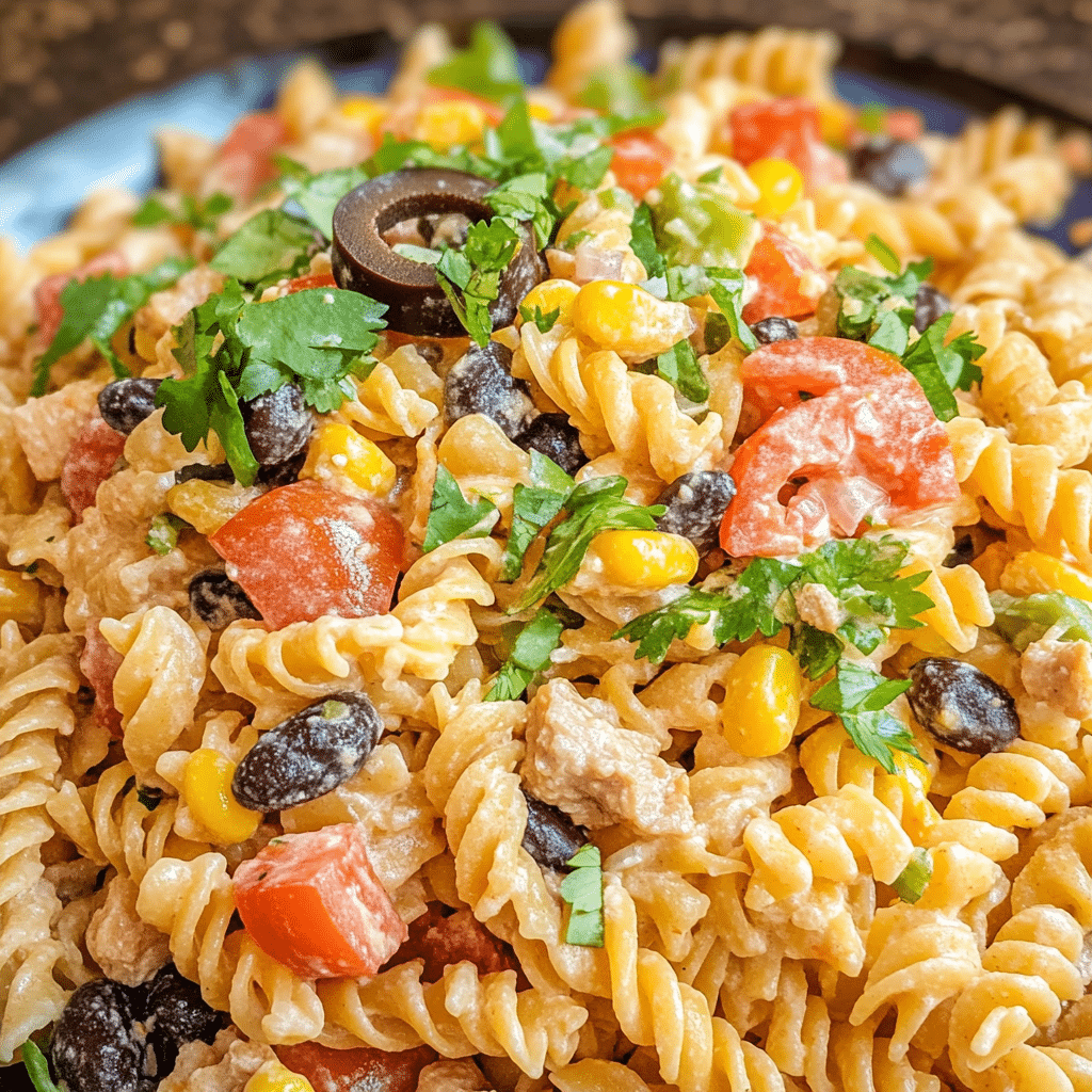 Get creative by customizing this pasta salad with your favorite mix-ins like black beans, avocado, or crunchy tortilla strips for added texture and flavor. Enjoy it chilled or fresh from the fridge for a refreshing bite.
