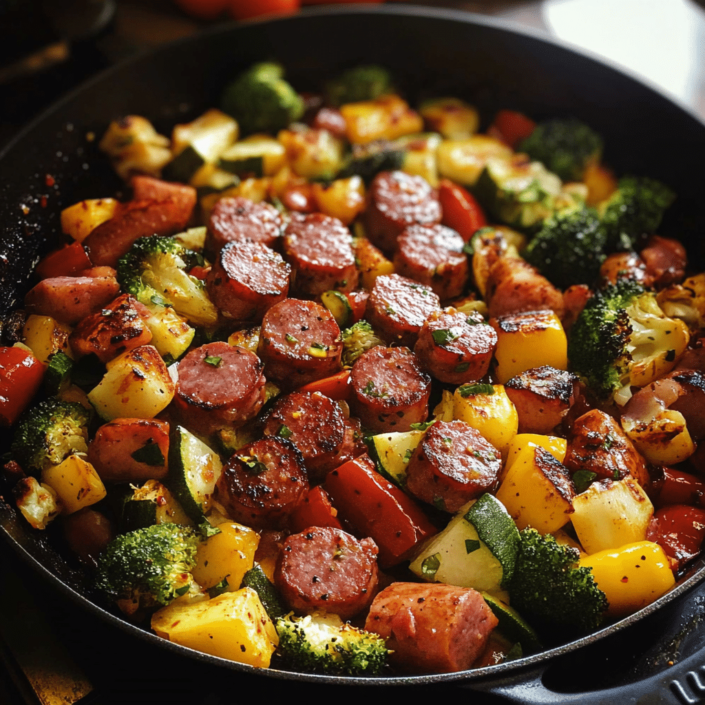 Yes, but ensure the sausage is cooked thoroughly before adding the vegetables. - What other vegetables work well in this dish?
